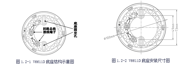 V6611D型探測(cè)器底座與V6611A型探測(cè)器底座通用,是V6611A型探測(cè)器底座的改進(jìn)型。其用于安裝V6621、V6621(Ex)、V6631、V6631(Ex)、V6641等型號(hào)的編碼型火災(zāi)探測(cè)器。