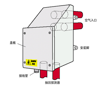 <!--[if !supportLists]-->§ <!--[endif]-->如果沒有維修空間,加熱器和GST空氣采樣式感煙火災探測報警器都可以安裝在建筑物墻上的避免氣候影響的防護箱內。